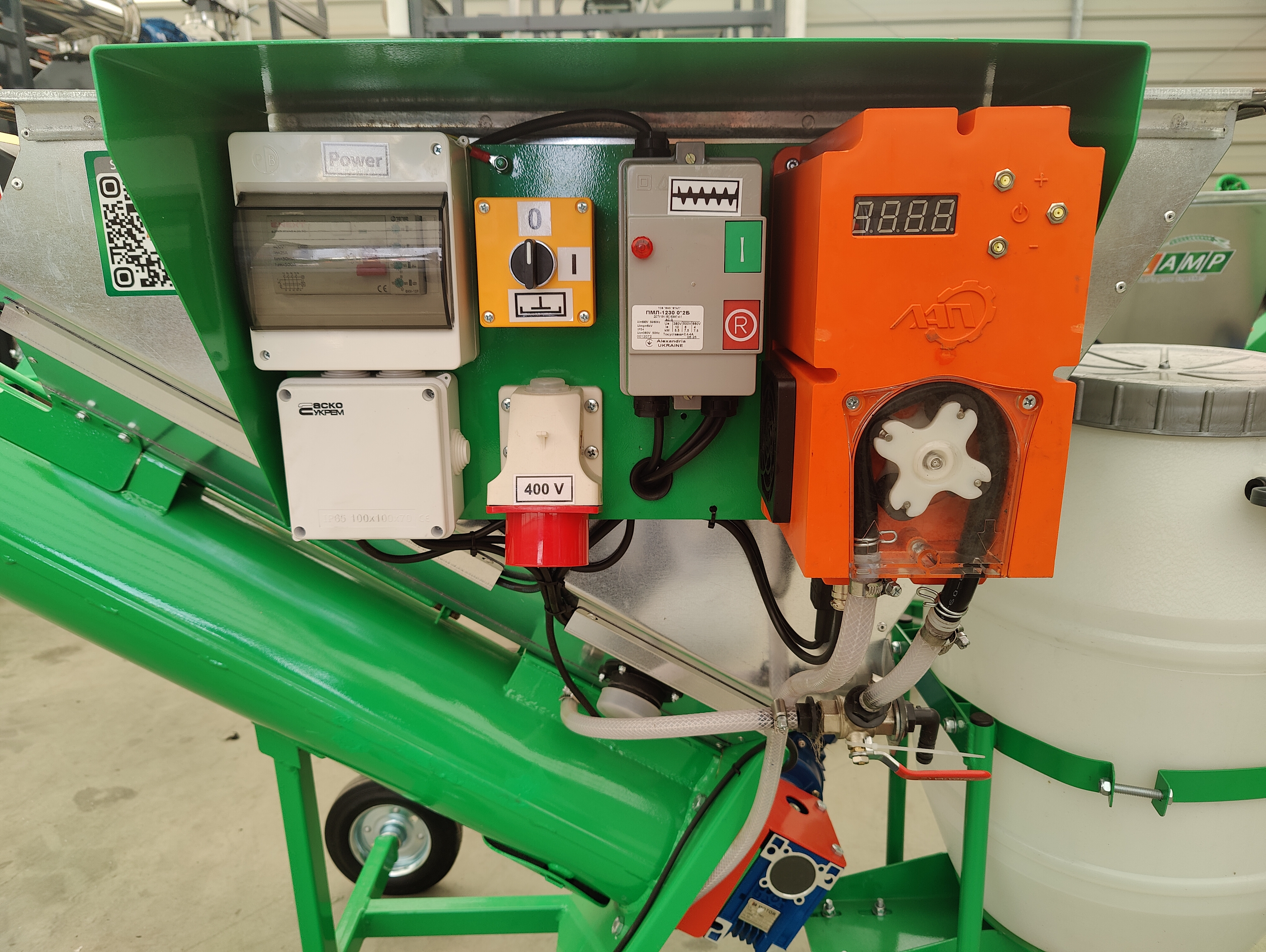 ✔ Програмований насос-дозатор перистальтичного типу (власне виробництво). Забезпечує точність подачі робочого розчину, рівномірно та якісно покриваючи насіння. Працює як із рідкими, так і з високов’язкими препаратами.